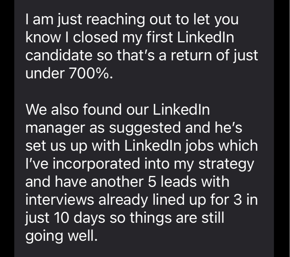 During my 16 years recruitment agency experience and over 4 years owning an agency, I have a track record of generating over $20M+ in recruitment fees and placing over 2,000 people into employment worldwide.